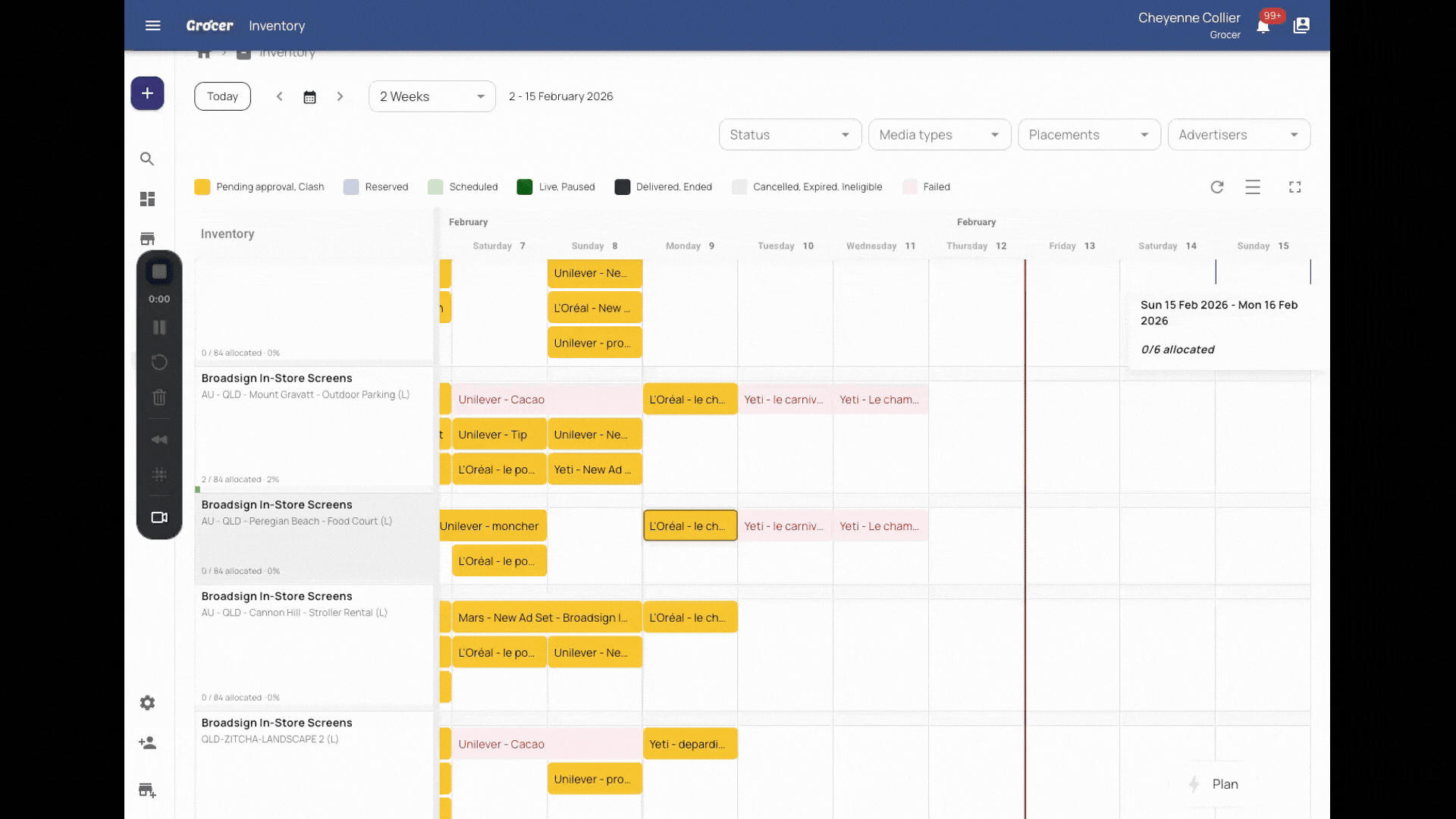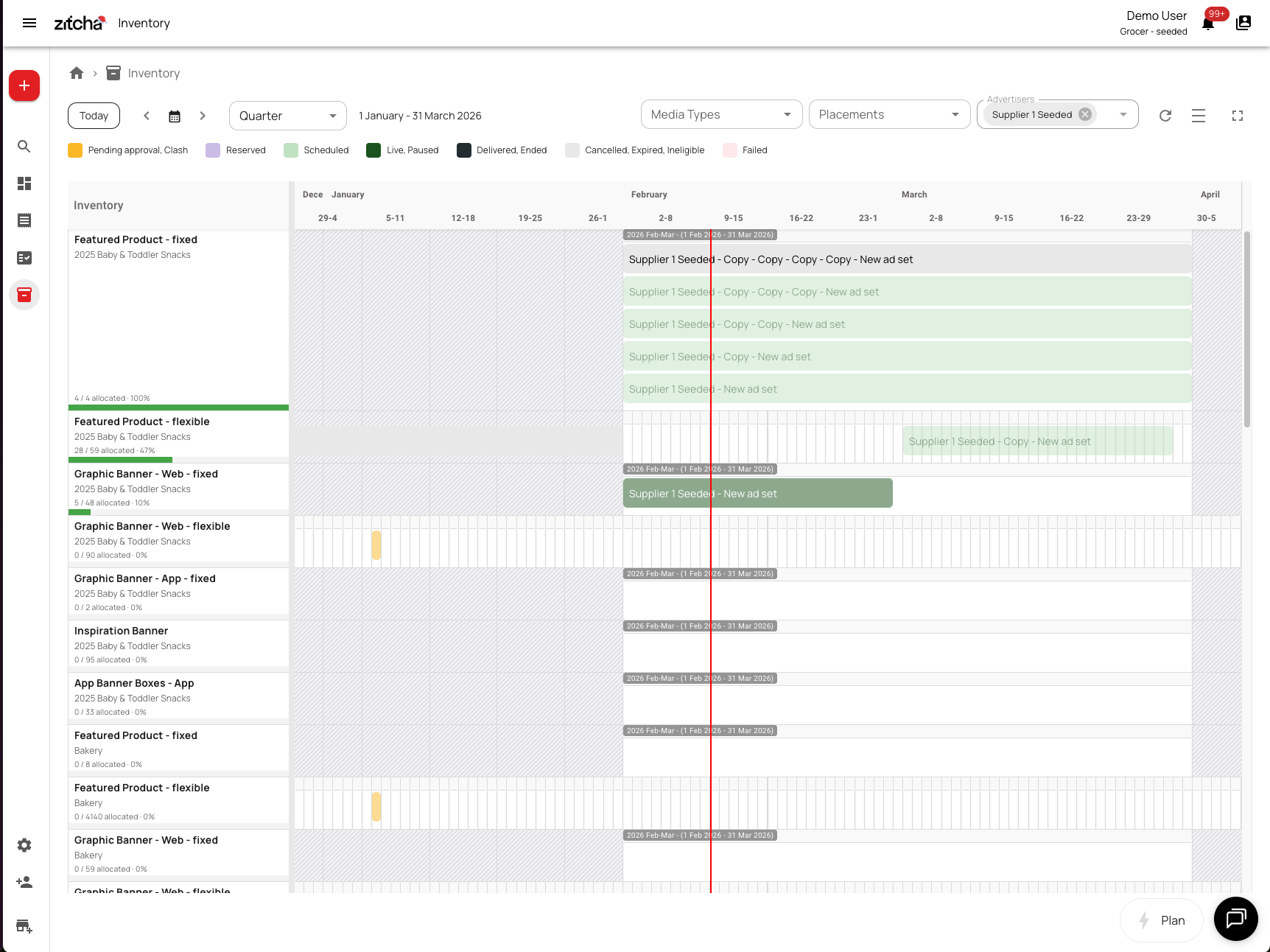 - Appear across all selected placements in the Inventory timeline
