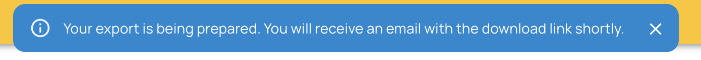 - Failure email indicates the export did not complete and prompts the user to retry.