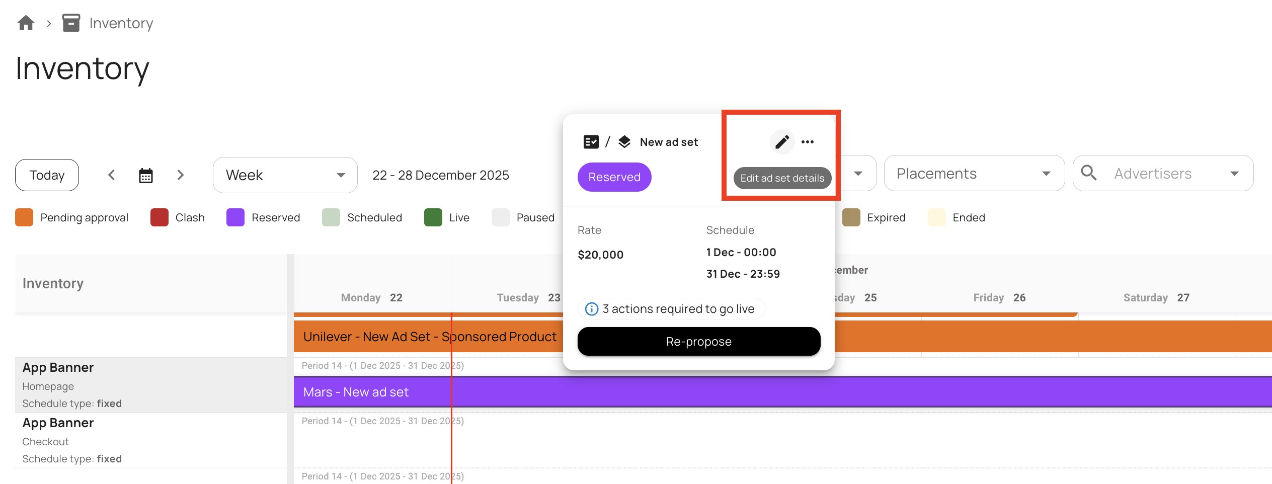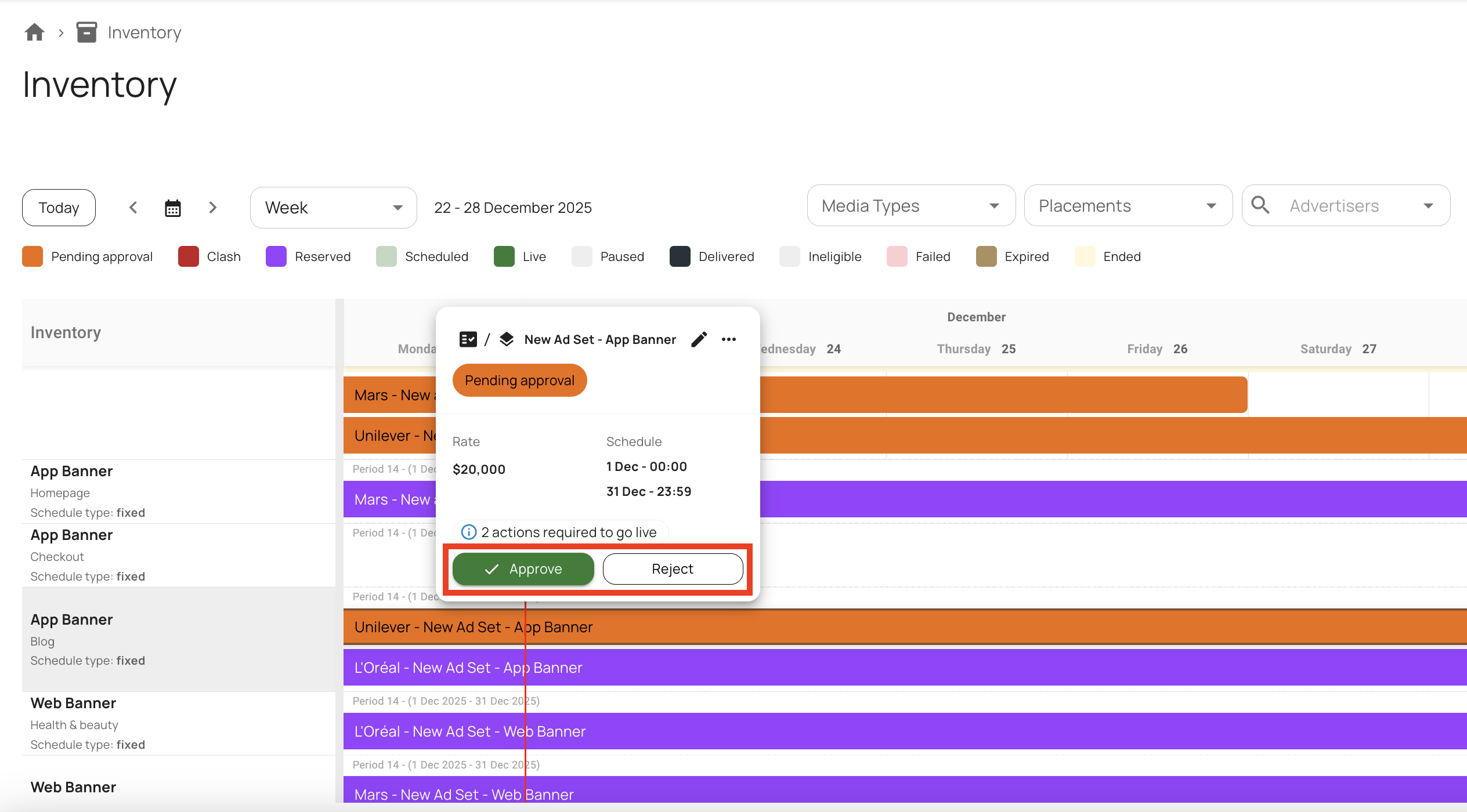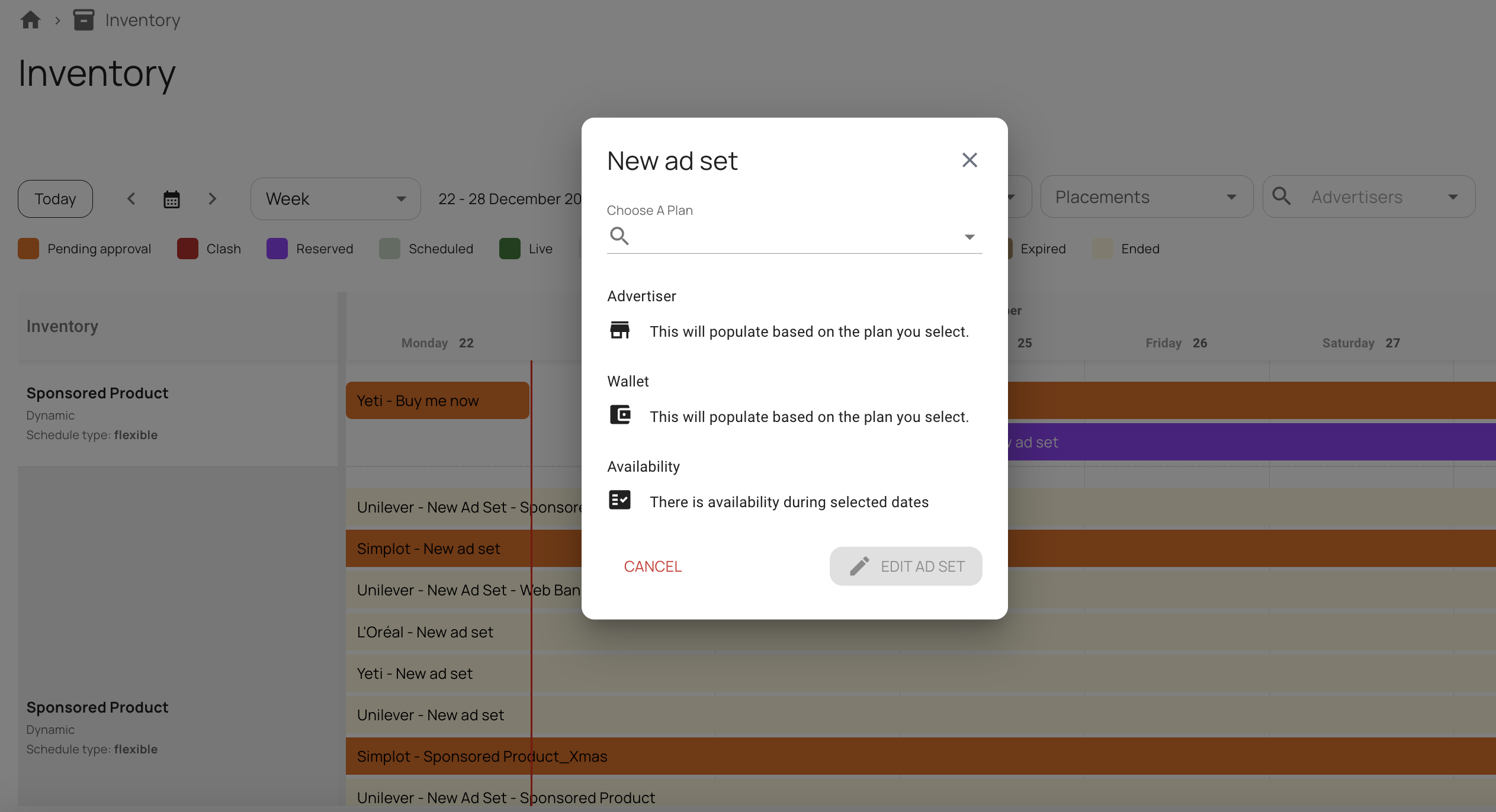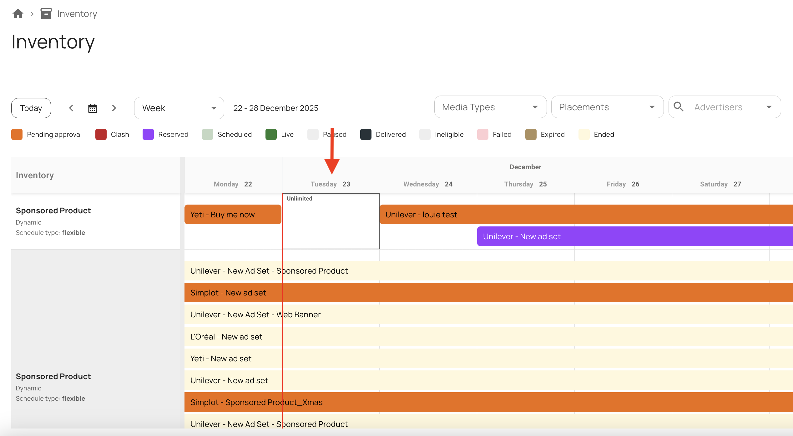 It allows you to plan, manage, and optimise your inventory in real time, ensuring maximum utilisation and visibility for both network managers and advertisers (advertiser view coming soon).